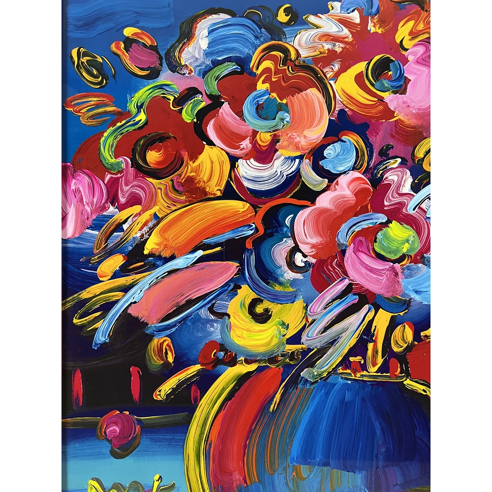 Peter Max’s floral still lifes are alive with bold, fauvist color, motion and kinetic brushwork. A collector favorite, they showcase his spontaneous yet controlled expressionistic painting style which emerged in the early 1960s.